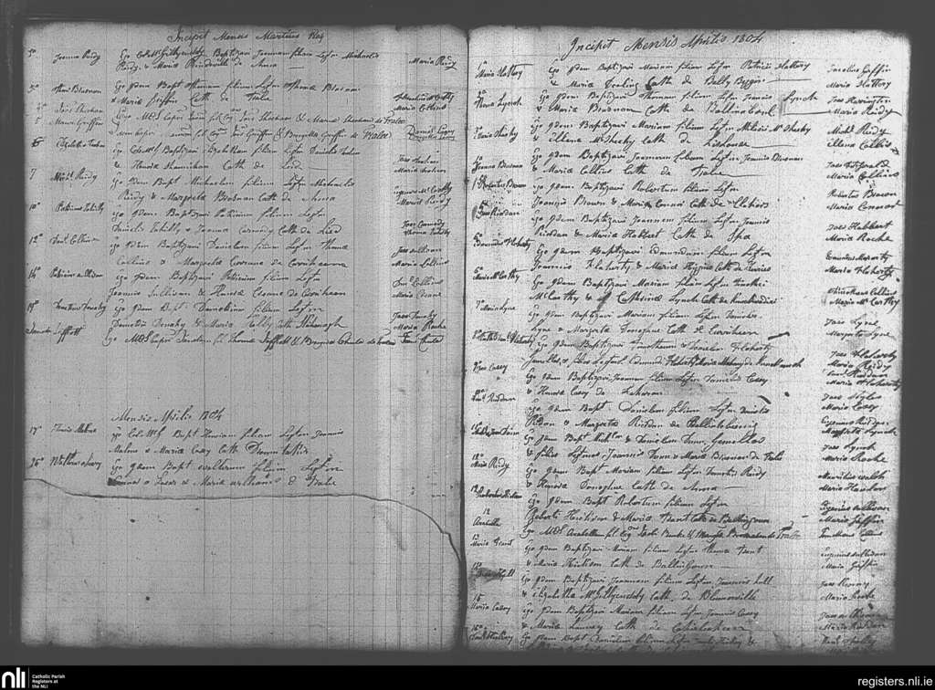 Tralee; County of Kerry; Diocese of Kerry. Baptisms, Mar. 1804 to Apr. 1804