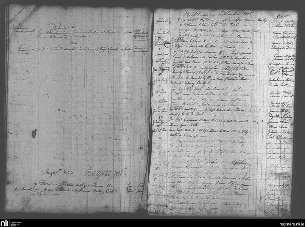 Tralee; County of Kerry; Diocese of Kerry. Baptisms, June 1805 to Sep. 1805