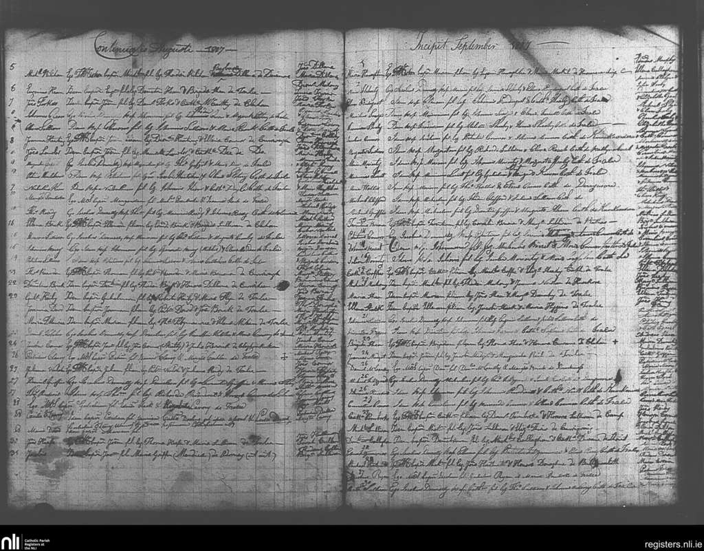 Tralee; County of Kerry; Diocese of Kerry. Baptisms, Aug. 1807 to Sep. 1807