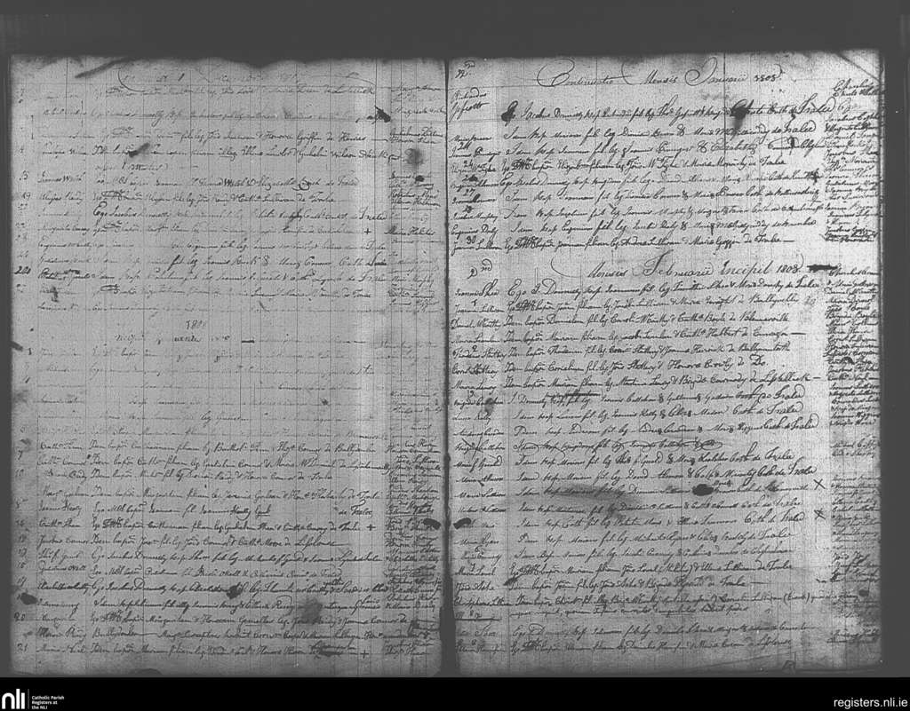 Tralee; County of Kerry; Diocese of Kerry. Baptisms, Dec. 1807 to Feb. 1808