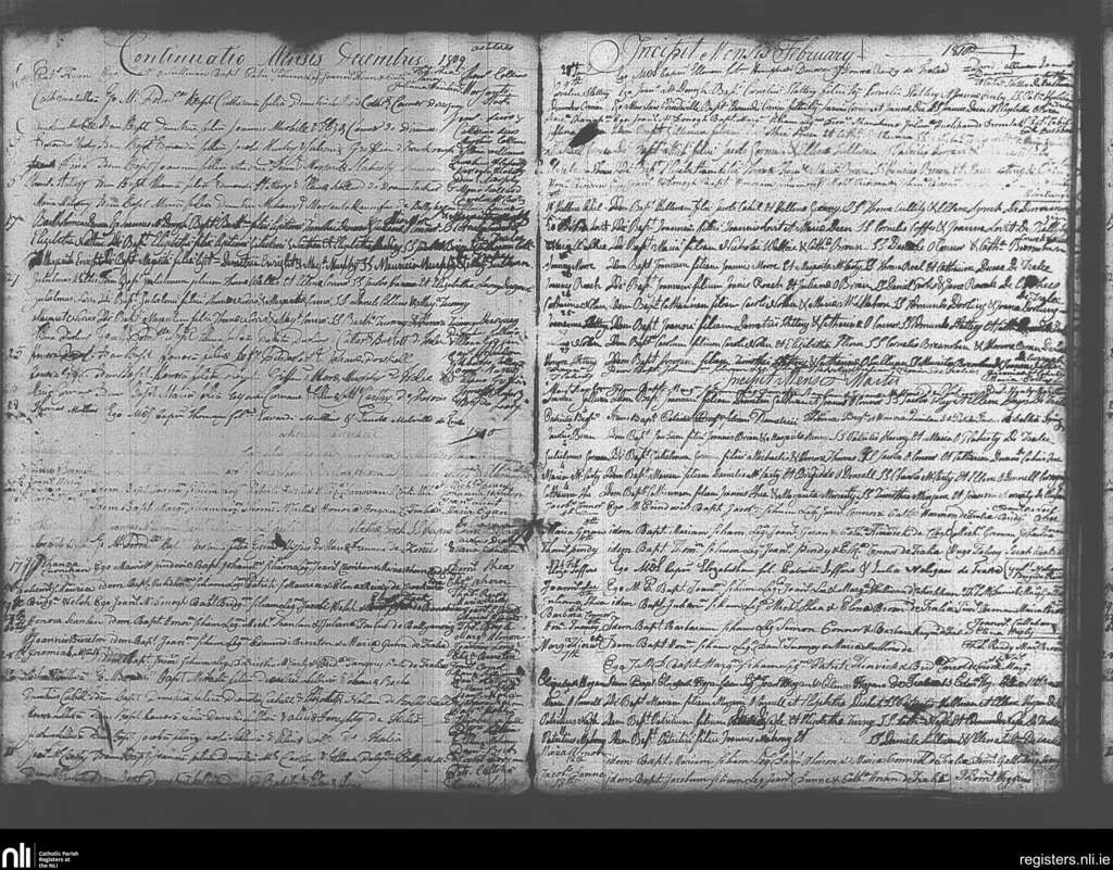 Tralee; County of Kerry; Diocese of Kerry. Baptisms, Dec. 1809 to Mar. 1810