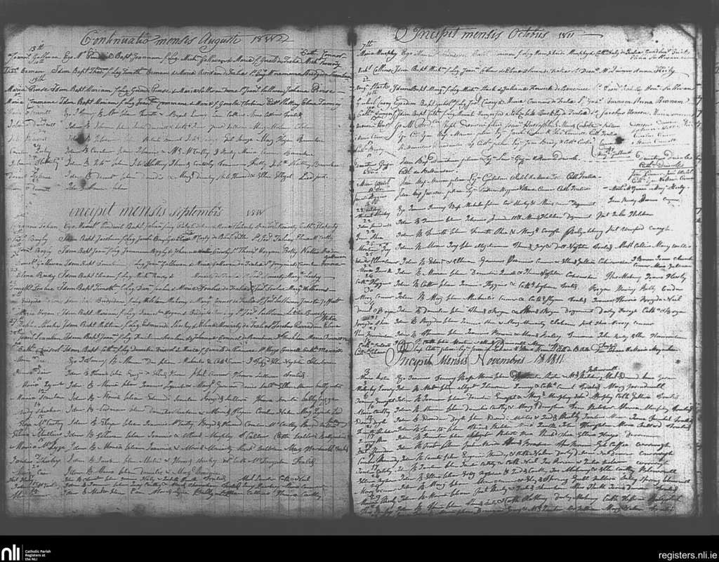 Tralee; County of Kerry; Diocese of Kerry. Baptisms, Aug. 1811 to Nov. 1811