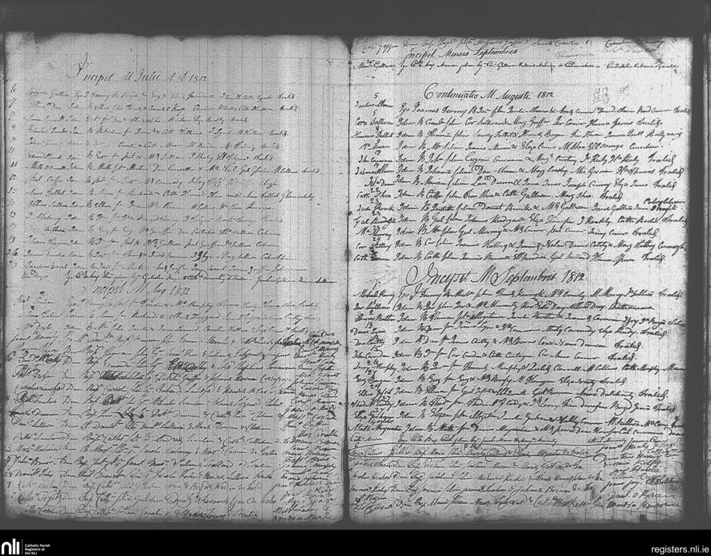 Tralee; County of Kerry; Diocese of Kerry. Baptisms, July 1812 to Sep. 1812