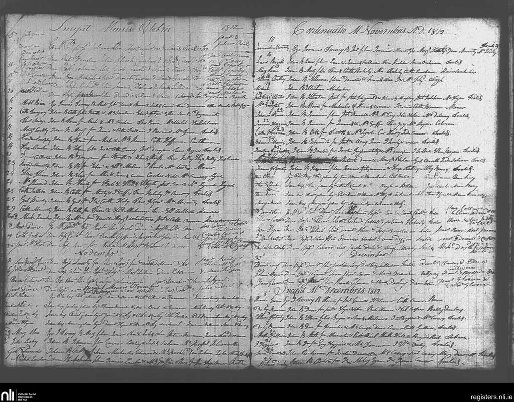 Tralee; County of Kerry; Diocese of Kerry. Baptisms, Oct. 1812 to Dec. 1812