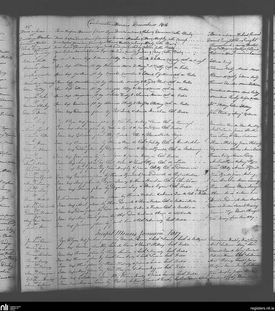 Tralee; County of Kerry; Diocese of Kerry. Baptisms, Dec. 1816 to Jan. 1817