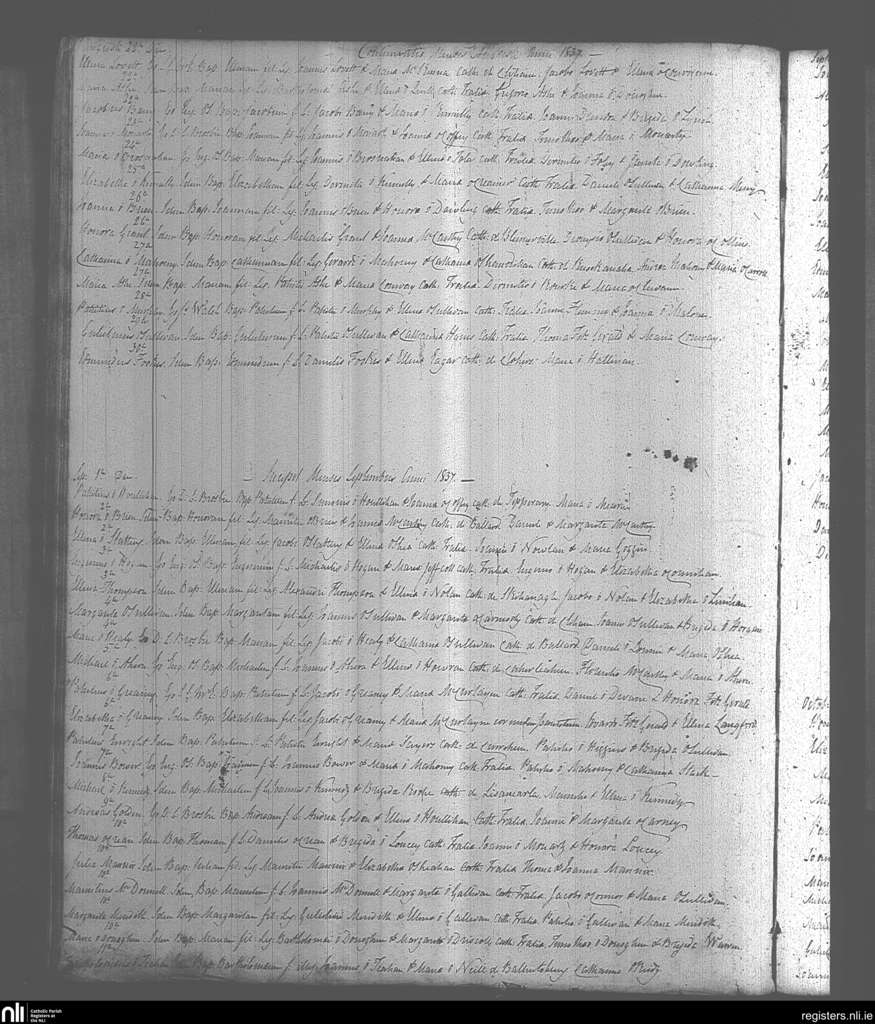Tralee; County of Kerry; Diocese of Kerry. Baptisms, Aug. 1837 to Sep. 1837
