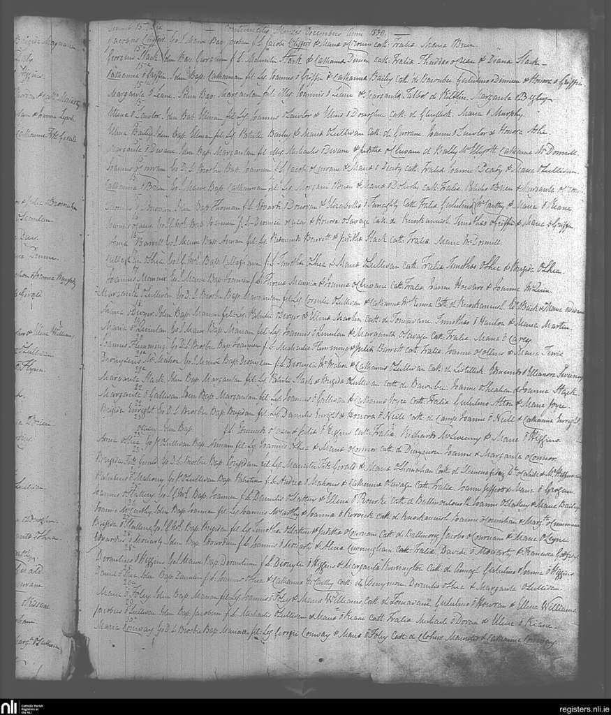 Tralee; County of Kerry; Diocese of Kerry. Baptisms, Dec. 1839