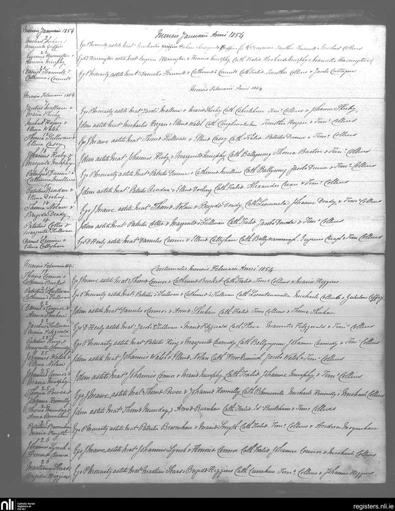 Tralee; County of Kerry; Diocese of Kerry. Marriages, Jan. 1854 to Feb. 1854
