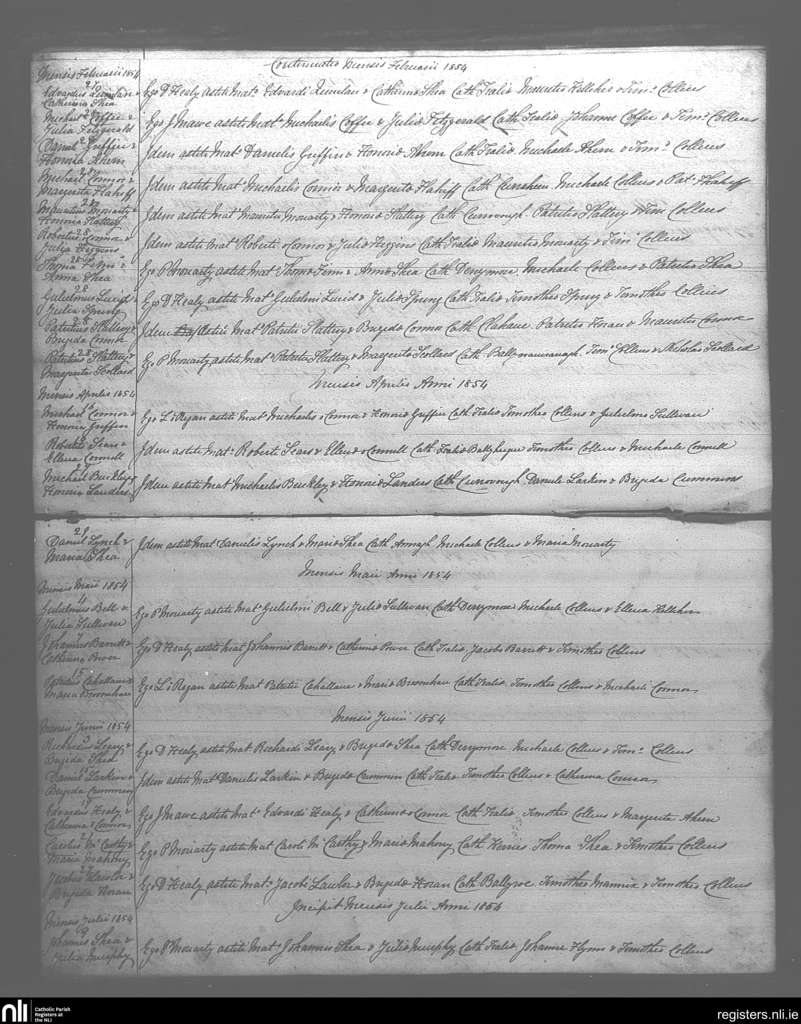 Tralee; County of Kerry; Diocese of Kerry. Marriages, Feb. 1854 to July 1854