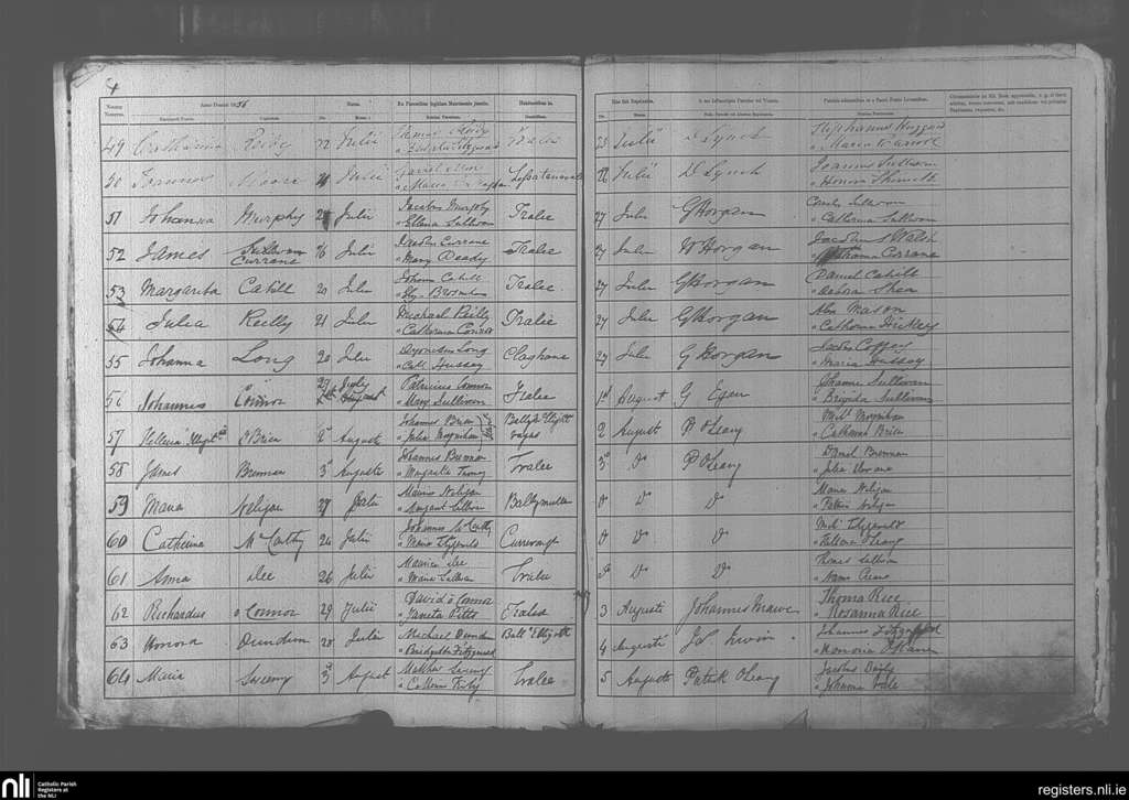 Tralee; County of Kerry; Diocese of Kerry. Baptisms, July 1856 to Aug. 1856