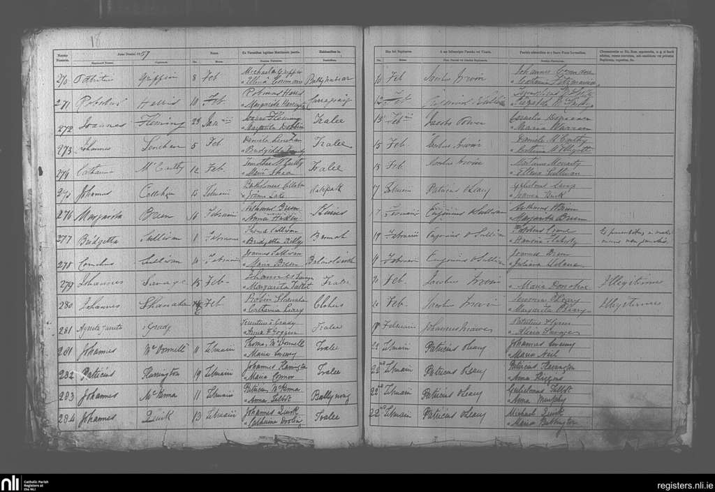 Tralee; County of Kerry; Diocese of Kerry. Baptisms, Feb. 1857
