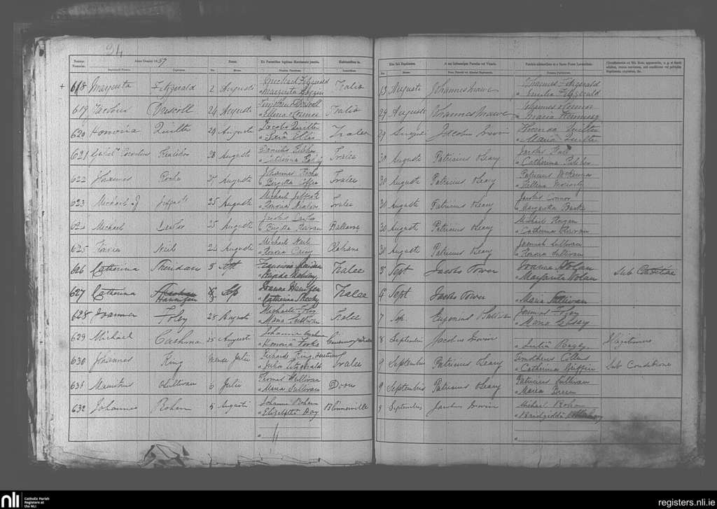 Tralee; County of Kerry; Diocese of Kerry. Baptisms, Aug. 1857 to Sep. 1857
