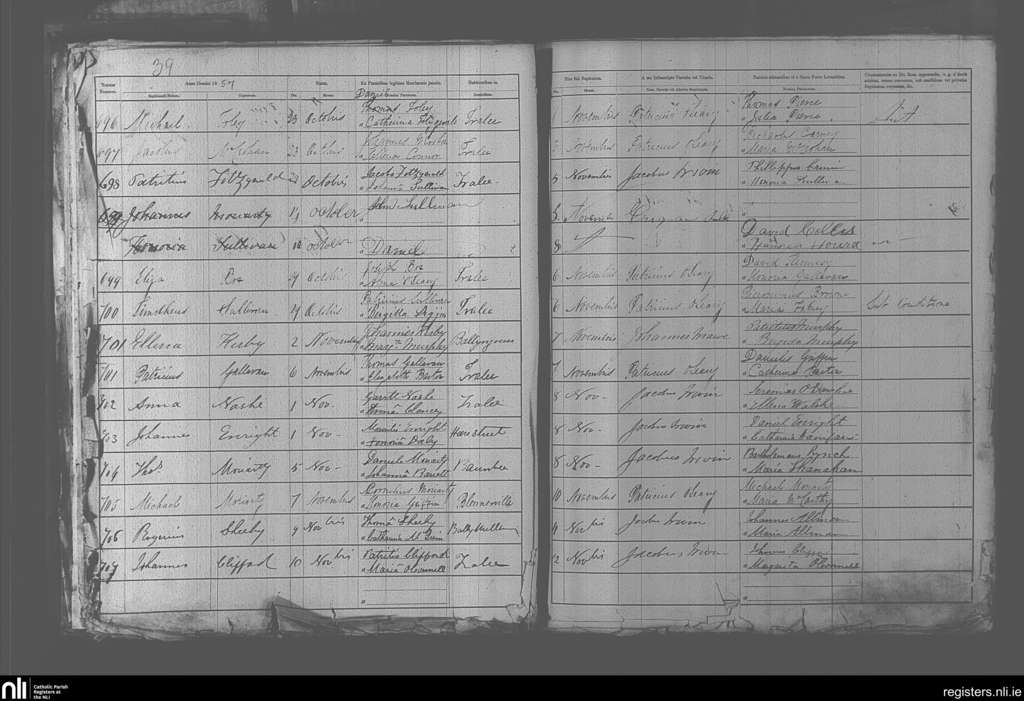 Tralee; County of Kerry; Diocese of Kerry. Baptisms, Nov. 1857