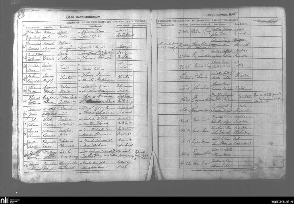 Tralee; County of Kerry; Diocese of Kerry. Marriages, Oct. 1856 to Nov. 1856