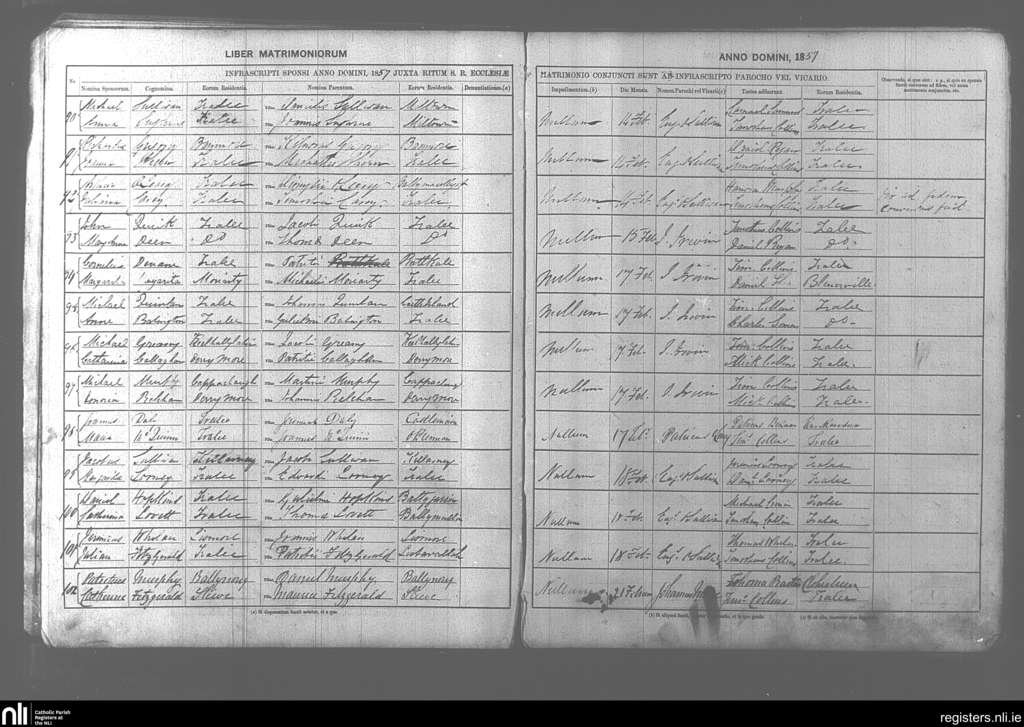 Tralee; County of Kerry; Diocese of Kerry. Marriages, Feb. 1857