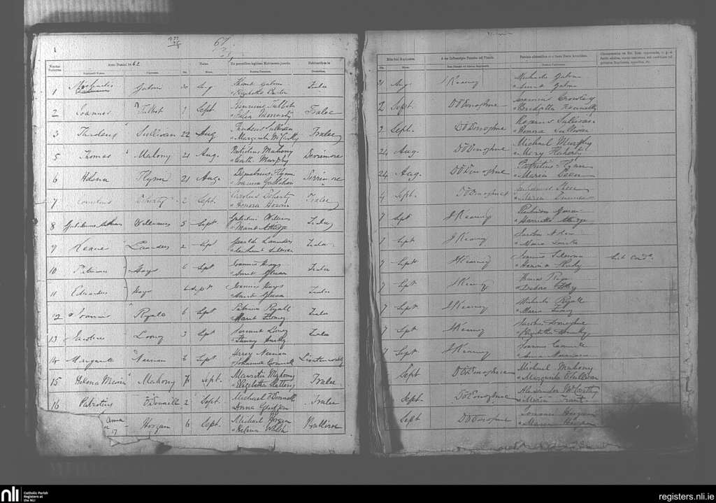 Tralee; County of Kerry; Diocese of Kerry. Baptisms, Aug. 1862 to Sep. 1862