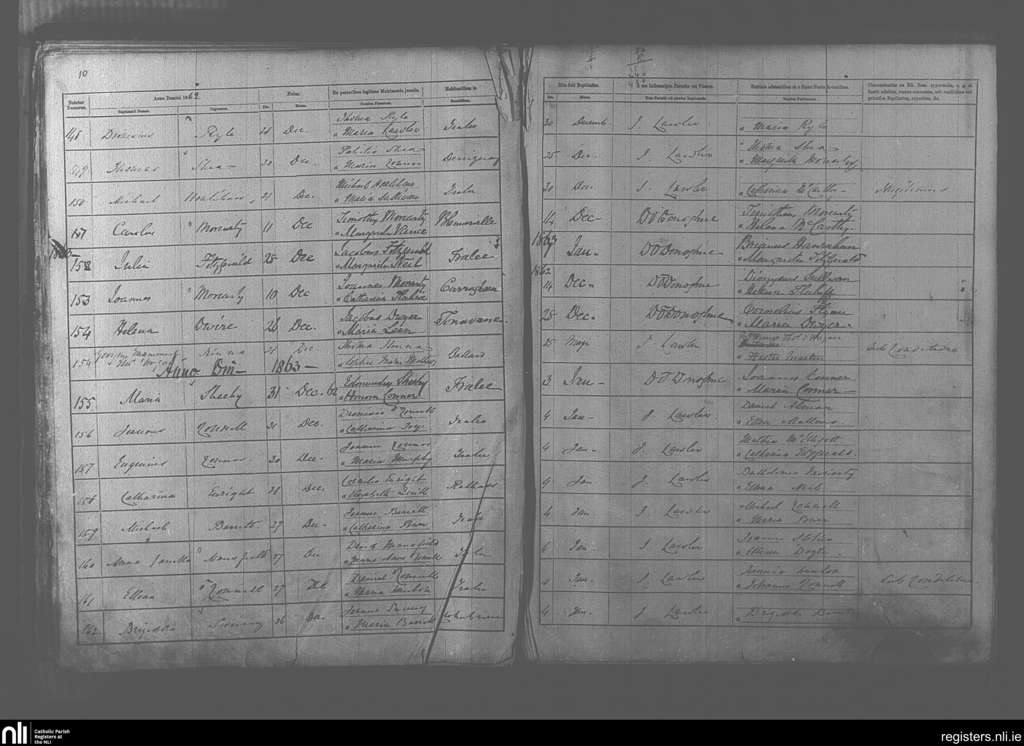 Tralee; County of Kerry; Diocese of Kerry. Baptisms, Dec. 1862 to Jan. 1863