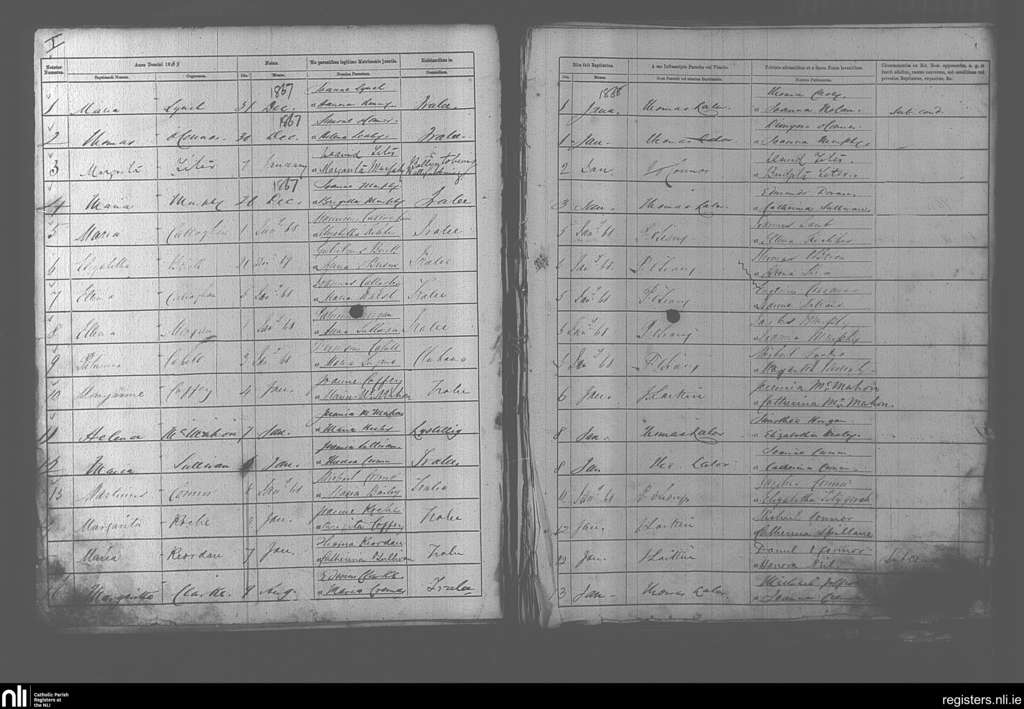 Tralee; County of Kerry; Diocese of Kerry. Baptisms, Jan. 1868