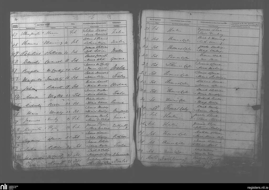 Tralee; County of Kerry; Diocese of Kerry. Baptisms, Feb. 1868 to Mar. 1868