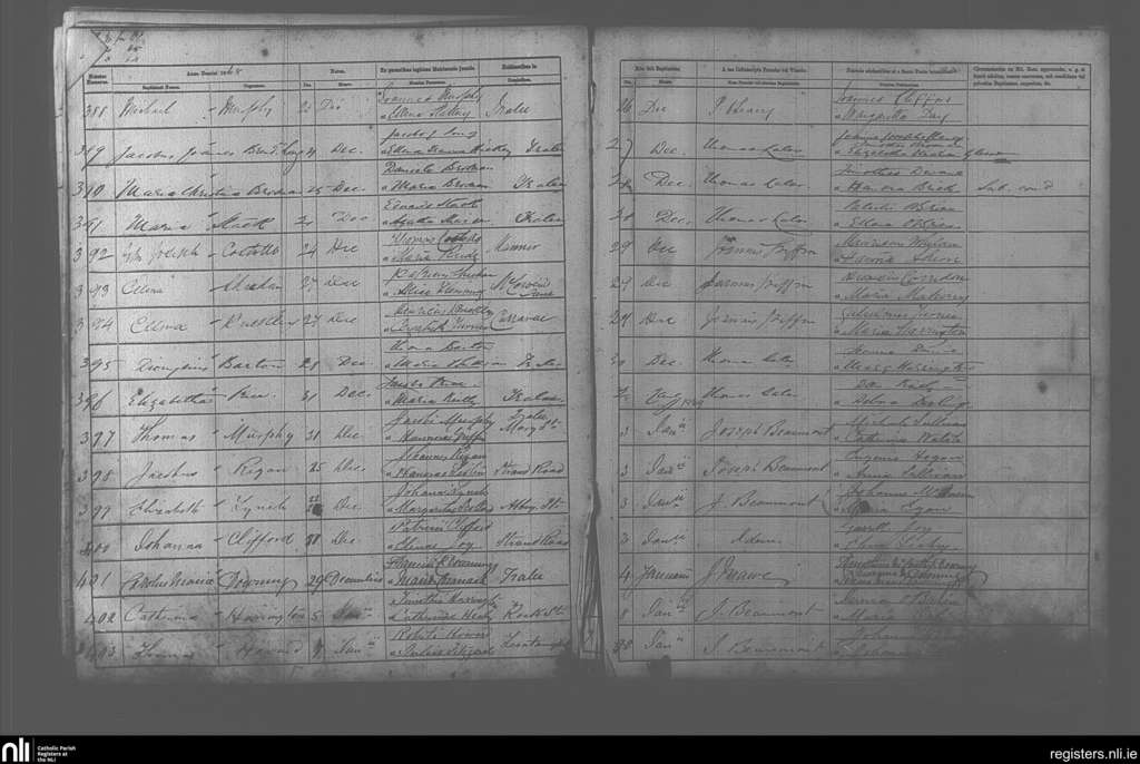 Tralee; County of Kerry; Diocese of Kerry. Baptisms, Dec. 1868 to Jan. 1869