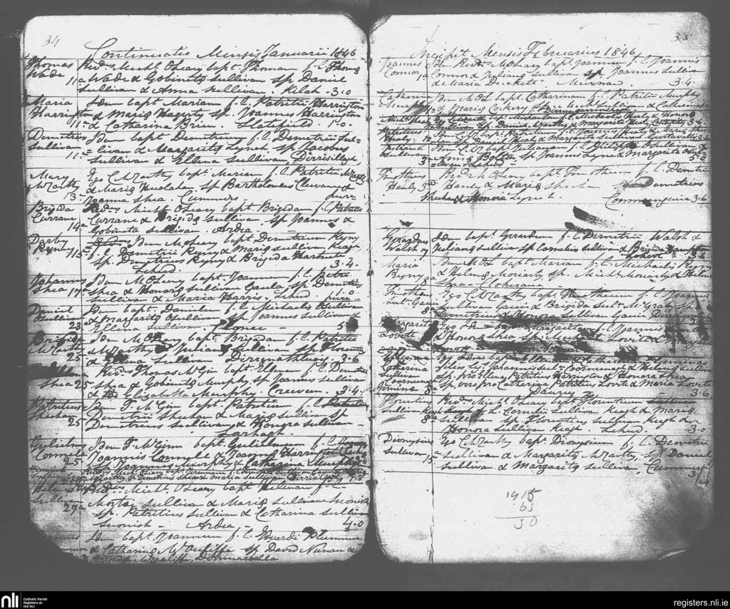 Tuosist; County of Kerry; Diocese of Kerry. Baptisms, Jan. 1846 to Feb. 1846