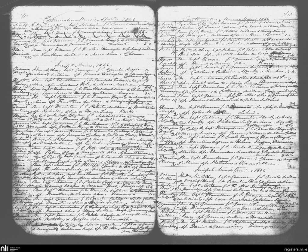 Tuosist; County of Kerry; Diocese of Kerry. Baptisms, Apr. 1846 to June 1846