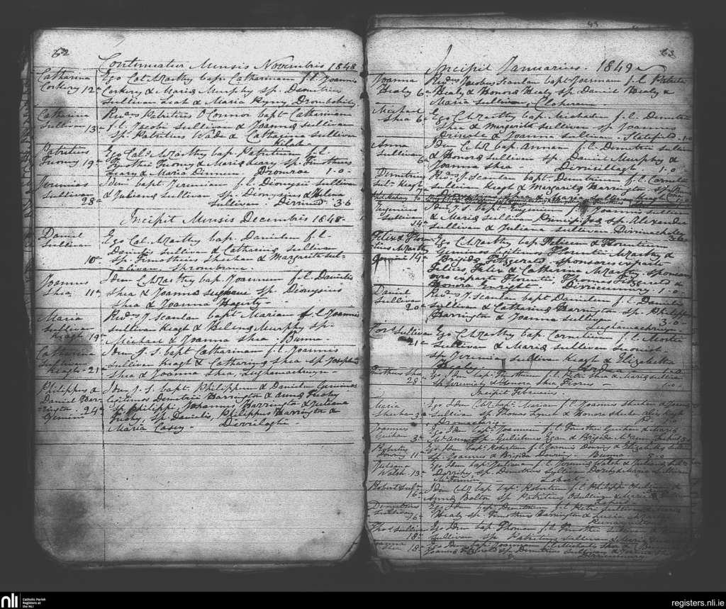 Tuosist; County of Kerry; Diocese of Kerry. Baptisms, Nov. 1848 to Feb. 1849