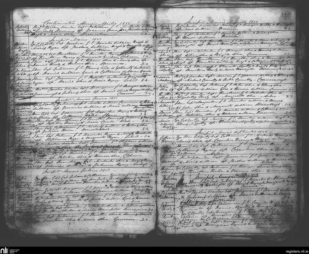 Tuosist; County of Kerry; Diocese of Kerry. Baptisms, Apr. 1851 to Oct. 1851