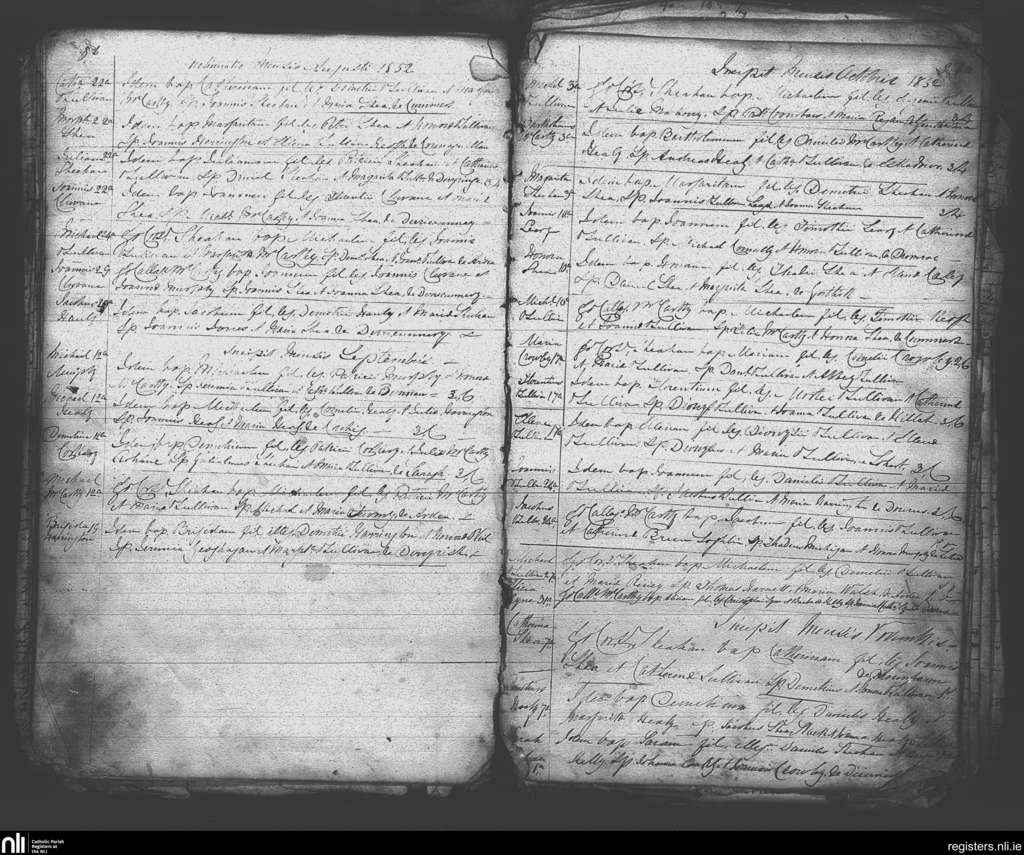 Tuosist; County of Kerry; Diocese of Kerry. Baptisms, Aug. 1852 to Nov. 1852