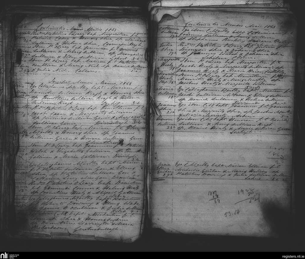 Tuosist; County of Kerry; Diocese of Kerry. Baptisms, Apr. 1863 to May 1863