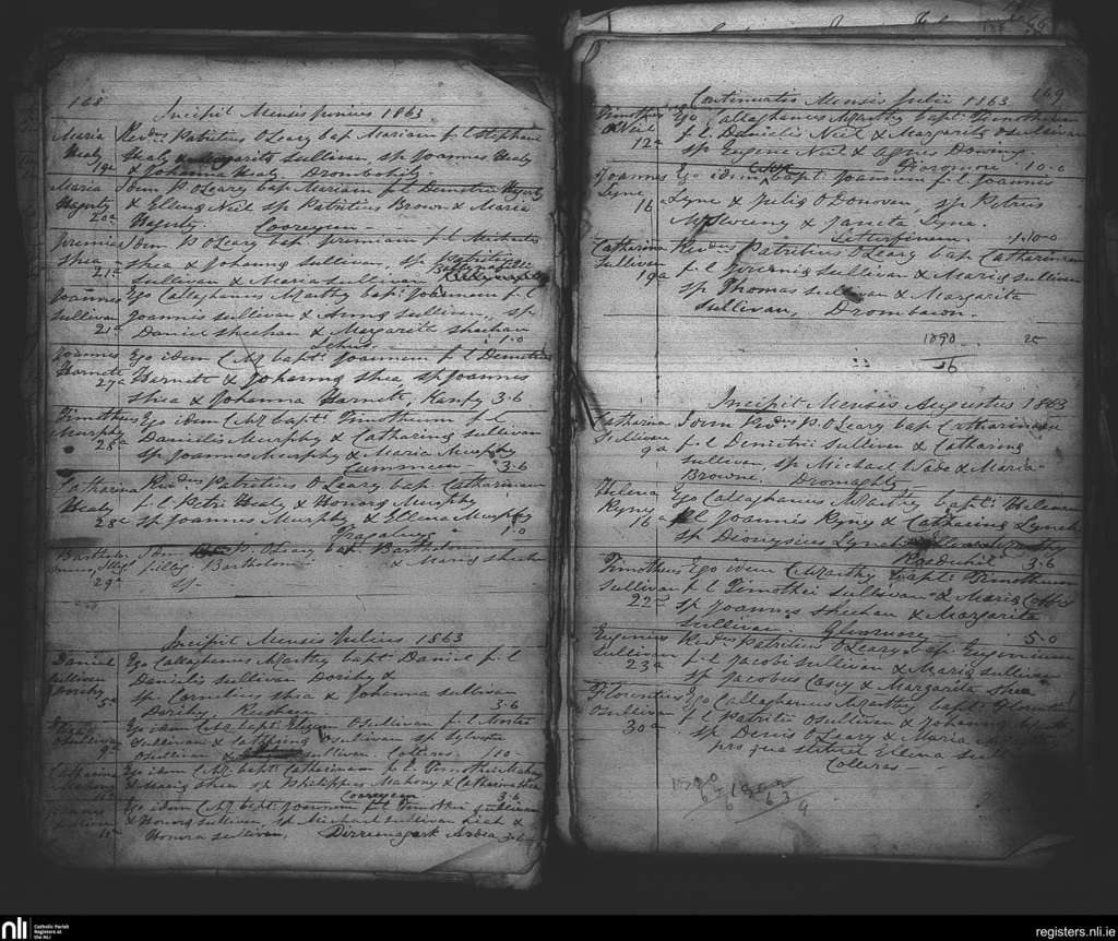 Tuosist; County of Kerry; Diocese of Kerry. Baptisms, June 1863 to Aug. 1863