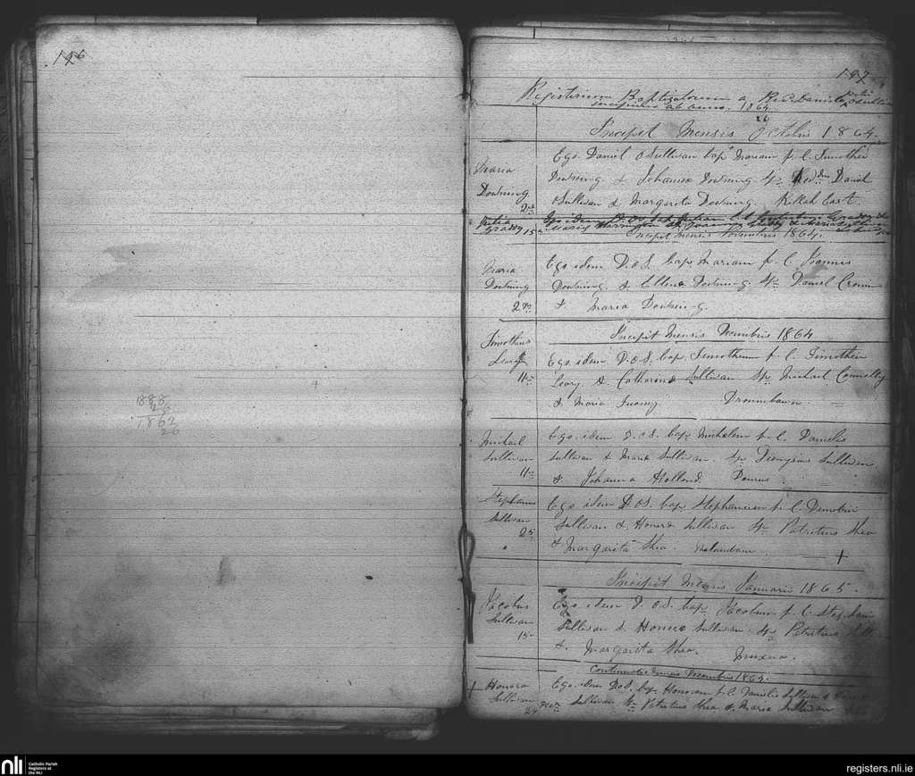 Tuosist; County of Kerry; Diocese of Kerry. Baptisms, Oct. 1864 to Jan. 1865