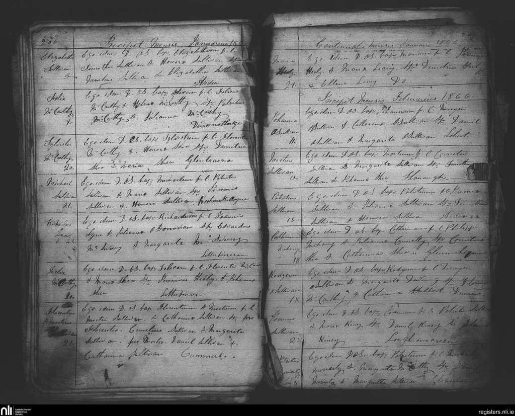 Tuosist; County of Kerry; Diocese of Kerry. Baptisms, Jan. 1866 to Feb. 1866