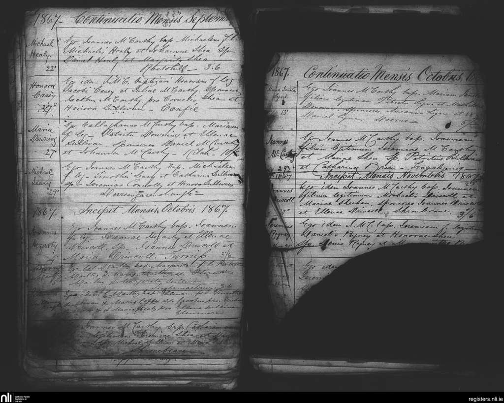 Tuosist; County of Kerry; Diocese of Kerry. Baptisms, Sep. 1867 to Nov. 1867