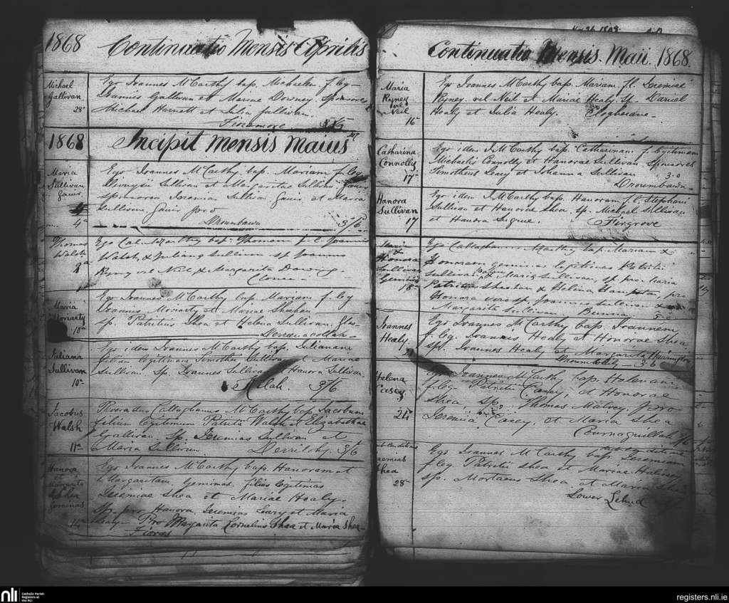 Tuosist; County of Kerry; Diocese of Kerry. Baptisms, Apr. 1868 to May 1868