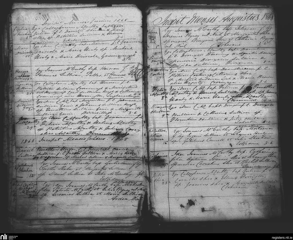 Tuosist; County of Kerry; Diocese of Kerry. Baptisms, June 1868 to Aug. 1868