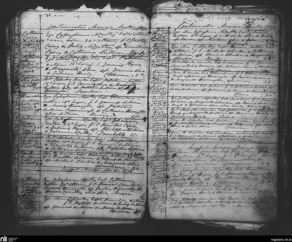 Tuosist; County of Kerry; Diocese of Kerry. Baptisms, Mar. 1870 to May 1870