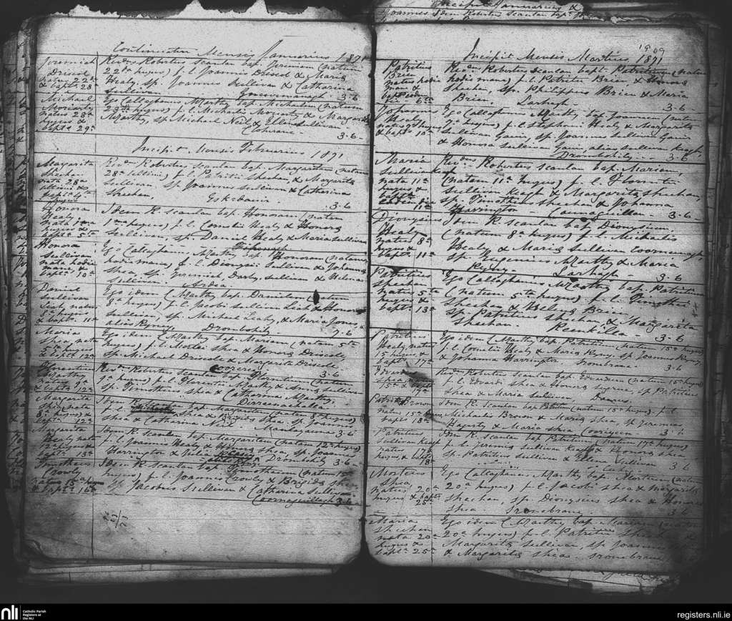 Tuosist; County of Kerry; Diocese of Kerry. Baptisms, Jan. 1871 to Mar. 1871