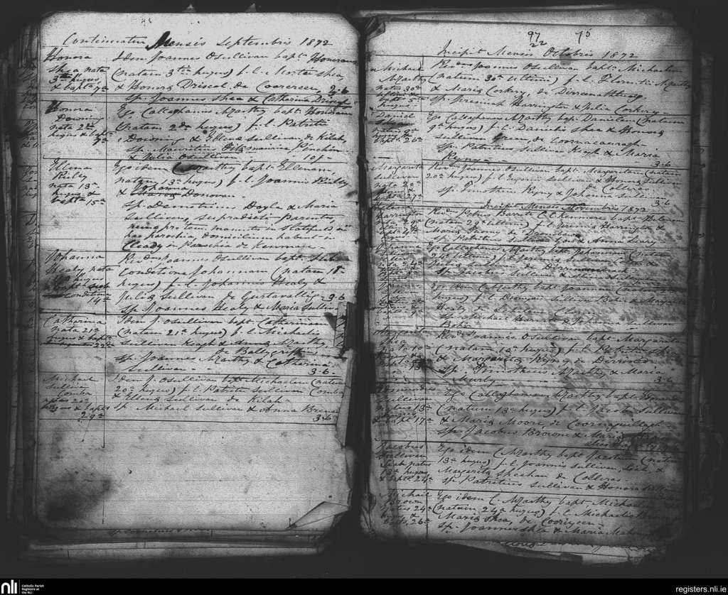 Tuosist; County of Kerry; Diocese of Kerry. Baptisms, Sep. 1872 to Nov. 1872
