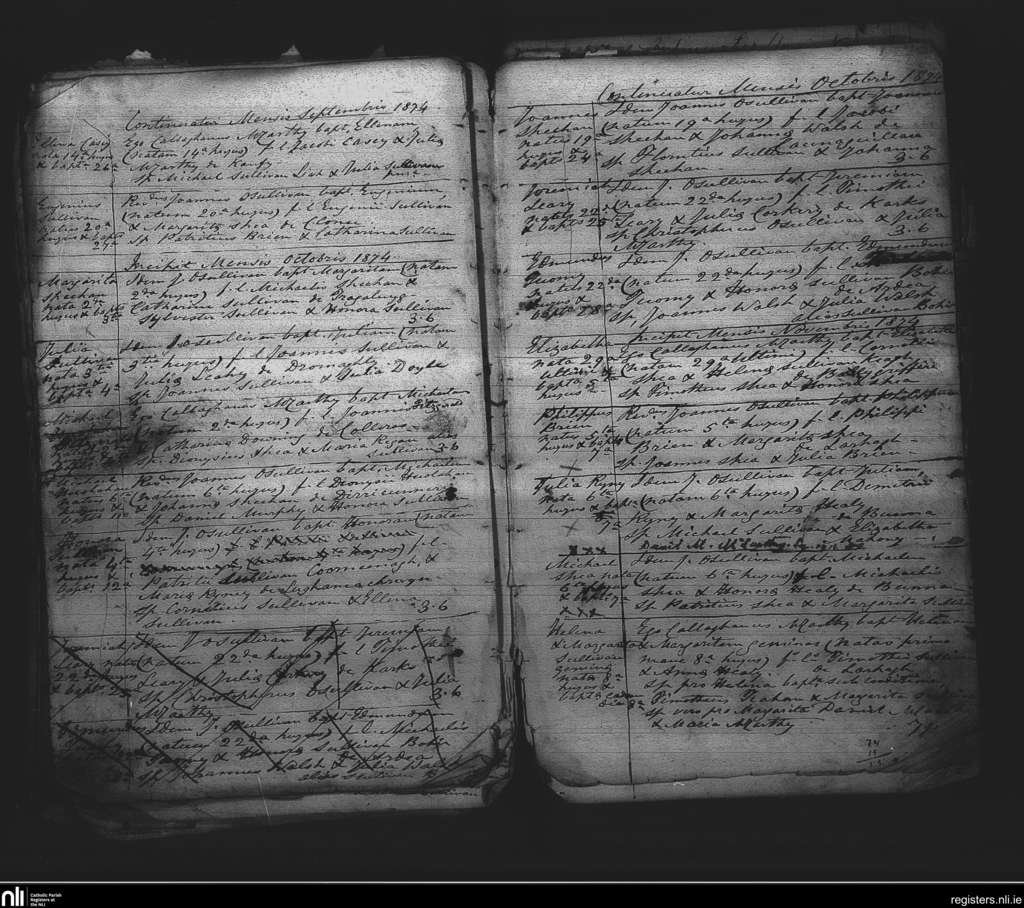 Tuosist; County of Kerry; Diocese of Kerry. Baptisms, Sep. 1874 to Nov. 1874