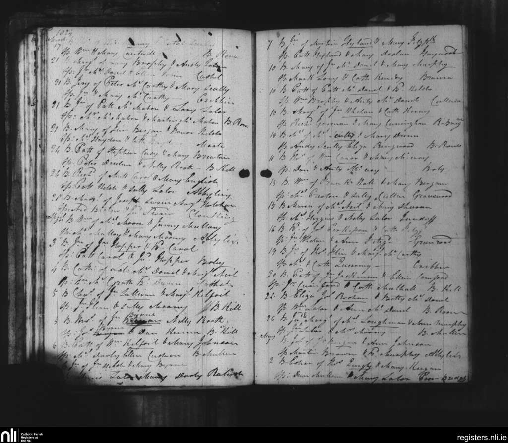 Abbeyleix and Ballyroan; County of Kilkenny, Laois; Diocese of Kildare and Leighlin. Baptisms, Mar. 1824 to May 1824