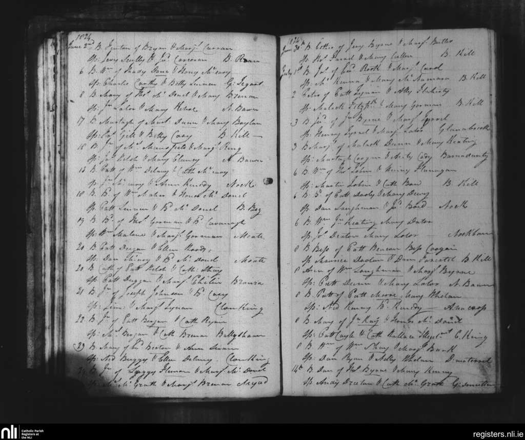 Abbeyleix and Ballyroan; County of Kilkenny, Laois; Diocese of Kildare and Leighlin. Baptisms, June 1824 to July 1824