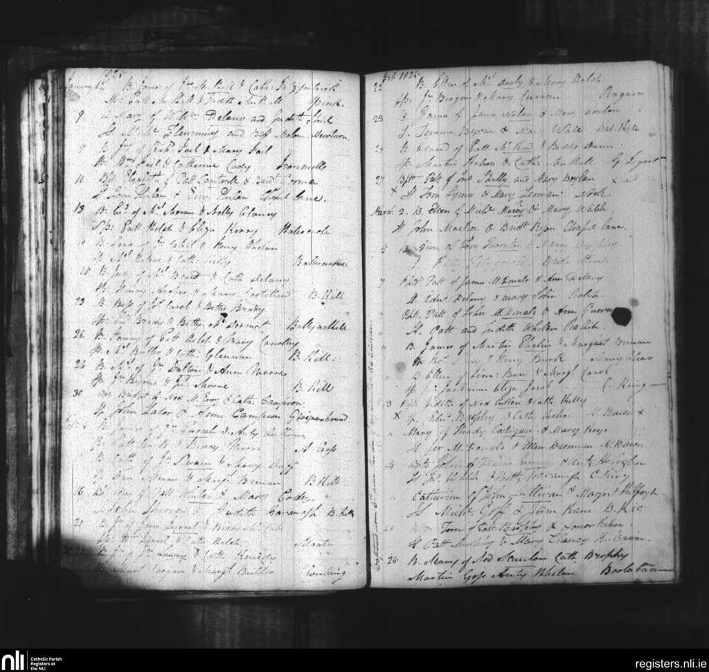Abbeyleix and Ballyroan; County of Kilkenny, Laois; Diocese of Kildare and Leighlin. Baptisms, Jan. 1825 to Mar. 1825
