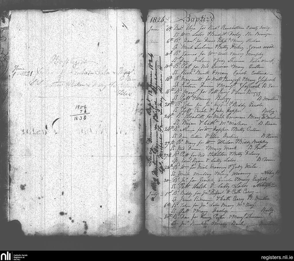 Abbeyleix and Ballyroan; County of Laois, Kilkenny; Diocese of Kildare and Leighlin. Baptisms, June 1824 to July 1824