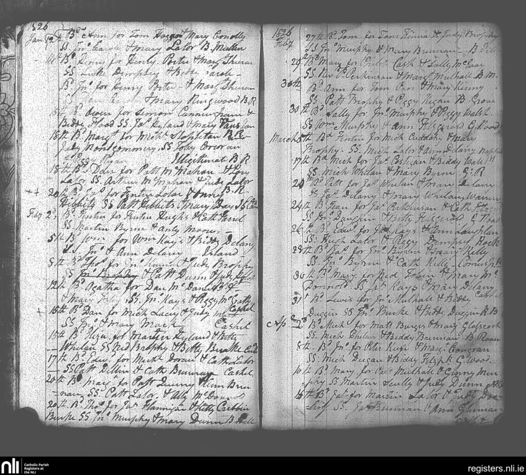 Abbeyleix and Ballyroan; County of Laois, Kilkenny; Diocese of Kildare and Leighlin. Baptisms, Jan. 1826 to Apr. 1826