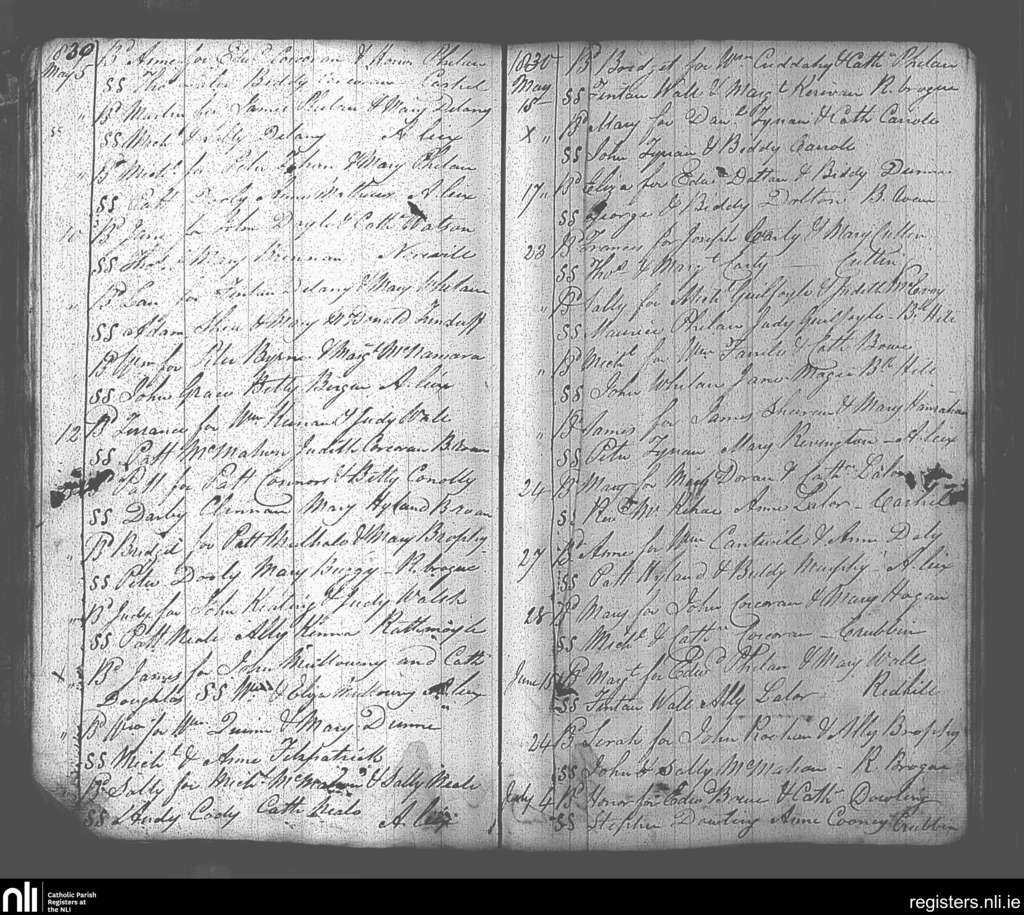 Abbeyleix and Ballyroan; County of Laois, Kilkenny; Diocese of Kildare and Leighlin. Baptisms, May 1830 to July 1830