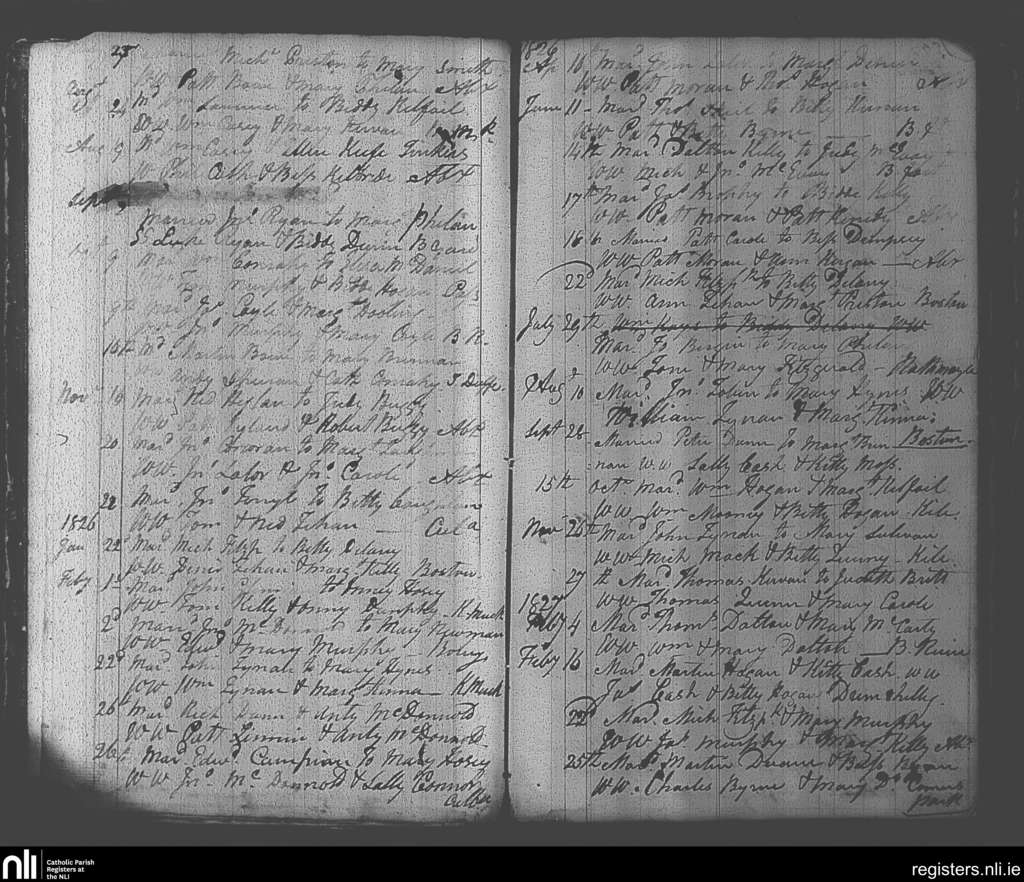 Abbeyleix and Ballyroan; County of Laois, Kilkenny; Diocese of Kildare and Leighlin. Marriages, Aug. 1825 to Feb. 1827