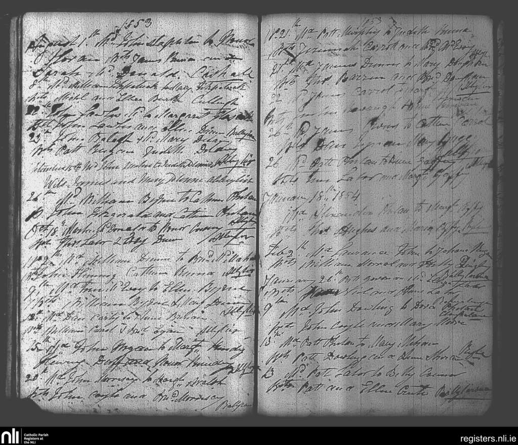 Abbeyleix and Ballyroan; County of Laois, Kilkenny; Diocese of Kildare and Leighlin. Marriages, Aug. 1853 to Feb. 1854
