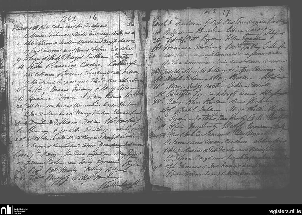 Abbeyleix and Ballyroan; County of Kilkenny, Laois; Diocese of Kildare and Leighlin. Baptisms, Feb. 1852 to May 1852