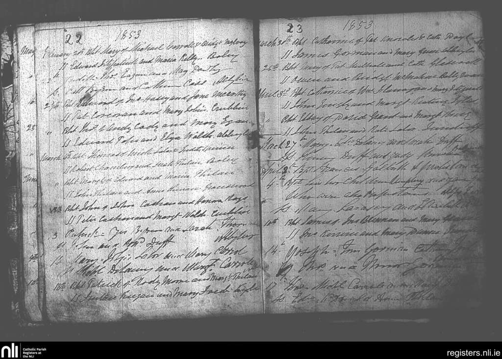 Abbeyleix and Ballyroan; County of Kilkenny, Laois; Diocese of Kildare and Leighlin. Baptisms, Feb. 1853 to Apr. 1853